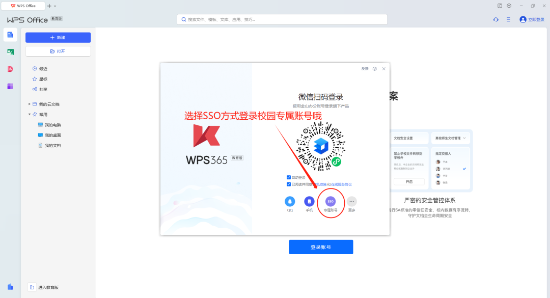 注:若您的页面未出现上述界面,请先将WPS365更新至最新版本后重试(最新安装包见“登录指南”部分)