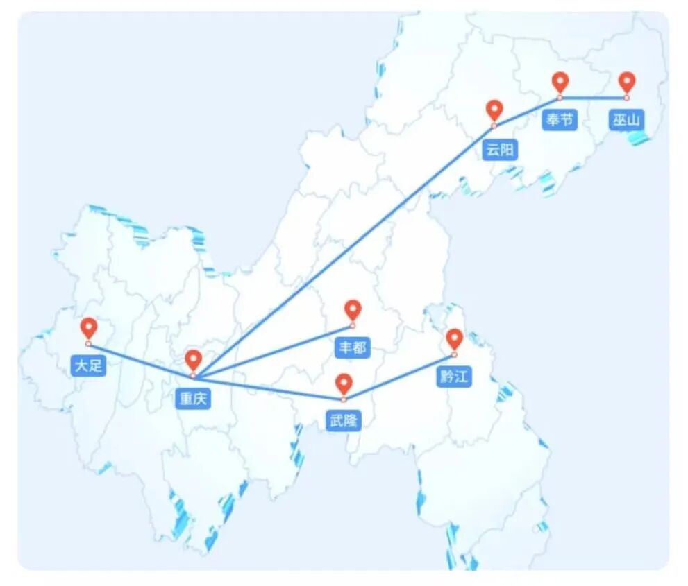 “乐游山城”旅游计次票:重庆北站、重庆西站、重庆东站、大足南站、黔江站、武隆南站、奉节站、巫山站、云阳站、丰都站。