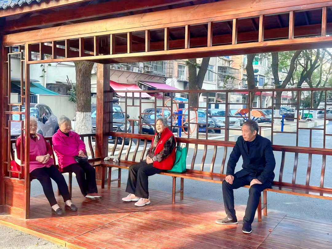 冬日暖阳透过疏朗的枝叶,在东湖区大院街道南京西路南社区的休闲广场上洒下斑驳金辉。老人们或围坐长椅闲话家常,或在凉亭中对弈品茶,或在健身区活动筋骨,人人脸上洋溢着恬淡安详的笑意。