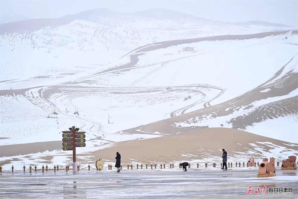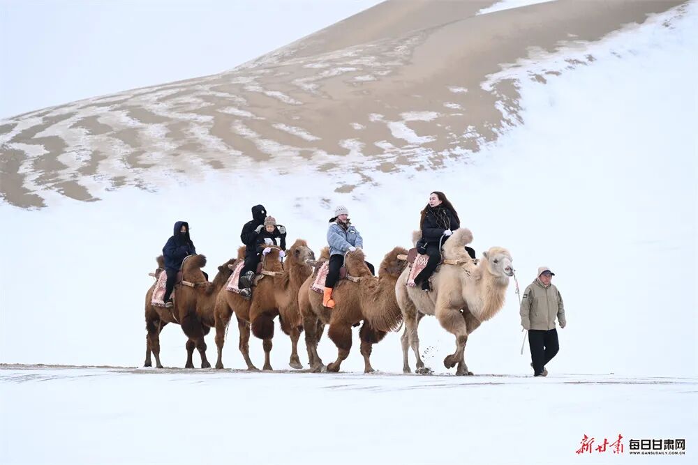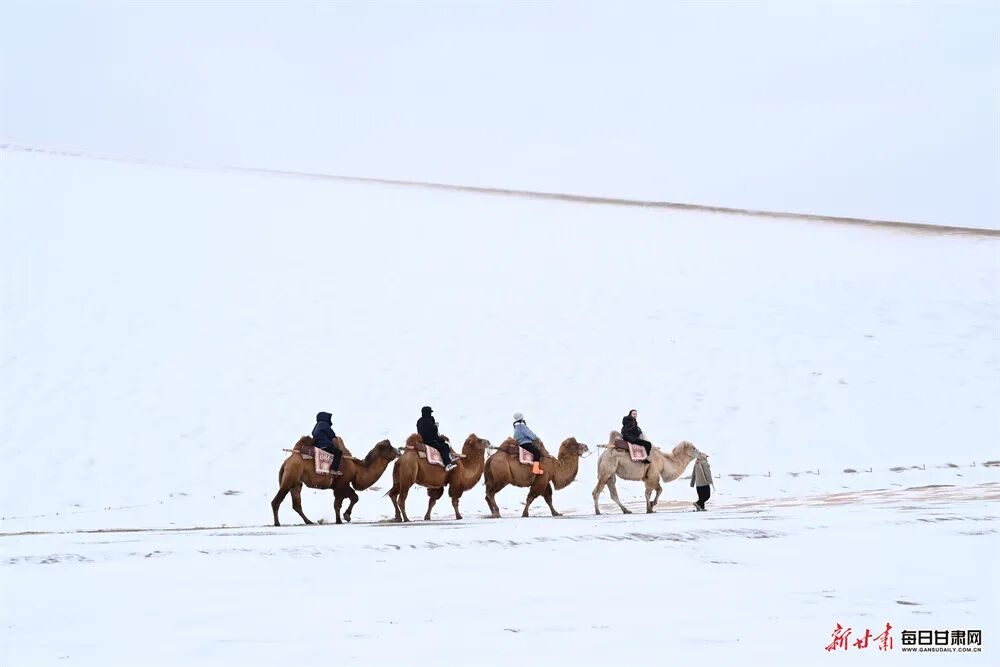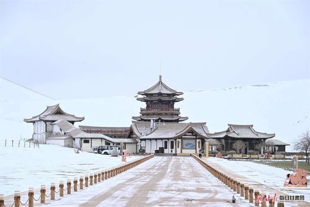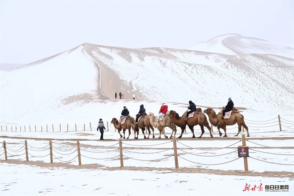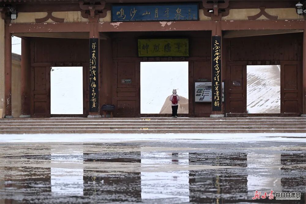 冬日,一场降雪过后,敦煌鸣沙山的沙丘被皑皑白雪覆盖,原本金黄的沙粒与洁白的雪花交相辉映,勾勒出雄浑又不失温婉的轮廓。澄澈的月牙泉水面如镜,倒映着银装素裹的沙山、低垂的云层,岸边的芦苇丛裹着薄雪,随风轻摇,与远处的戈壁、蓝天构成一幅绝美的冬日画卷。踩在雪后的沙丘上,脚下发出“咯吱咯吱”的声响,偶尔能听到风吹过沙丘的呜咽声,静谧中透着苍茫辽阔的意境。(新甘肃·每日甘肃网通讯员 张晓亮 摄影报道)