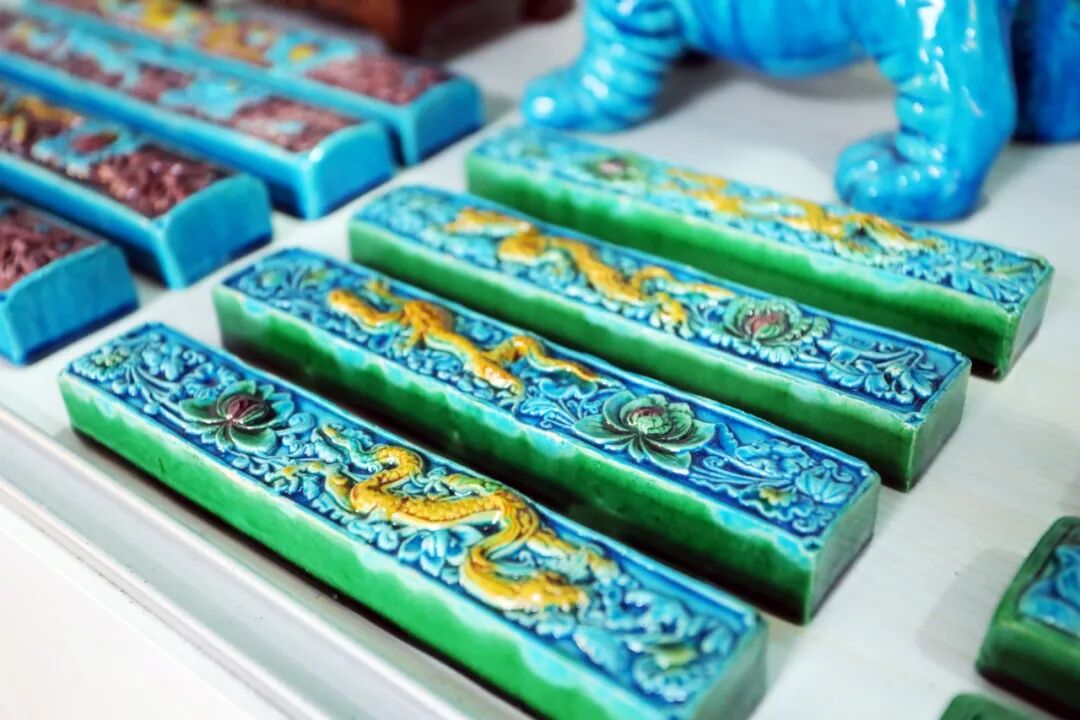 ▲在展厅内,一组清代康熙年间,苏氏先祖烧制流传至今的建筑琉璃展品