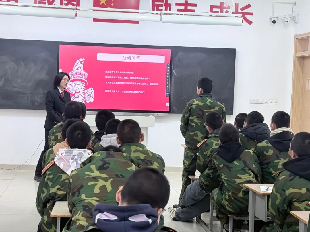 在授课中首先阐明,法律不仅是约束行为的准则,更是保护权益的盾牌。课程重点讲解了违法与犯罪的界限、不同年龄阶段的法律责任、常见违法犯罪行为的法律后果及其对个人前途的深远影响。法官语重心长地指出,曾经的错误是人生的一段经历,但绝非终点,深刻认识错误、真诚接受教育、主动学法守法,是扭转人生方向的关键。在“反思与成长”环节,引导同学们思考如何用法律重新规划未来。强调敬畏法律、遵守校规是重塑自我的第一步,鼓励同学们学会用合法途径解决问题、维护权益,将法治精神内化为日常行为的自觉遵循。