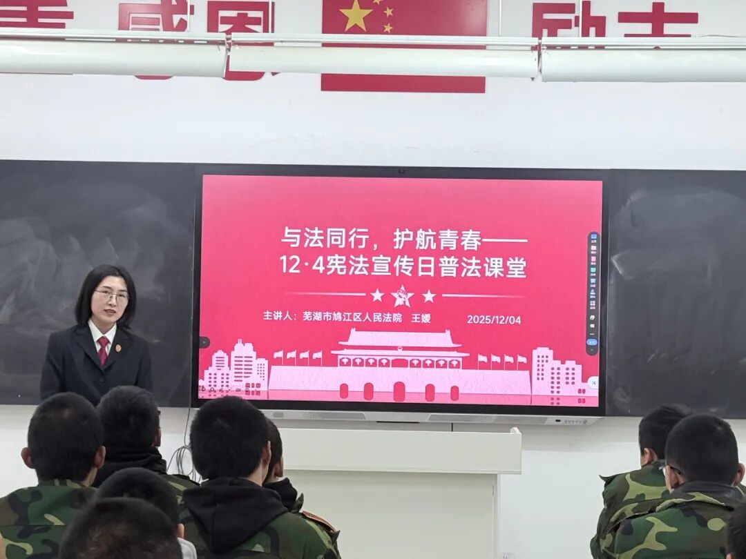 原标题:《12·4宪法宣传周|法治护航 向阳新生—鸠江区法院法官走进专门学校讲授“青春与法”主题课》