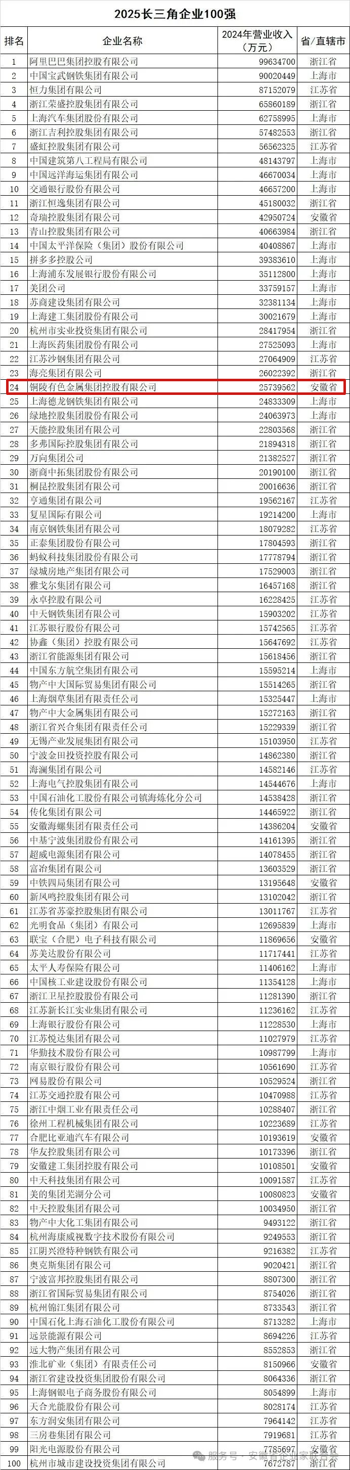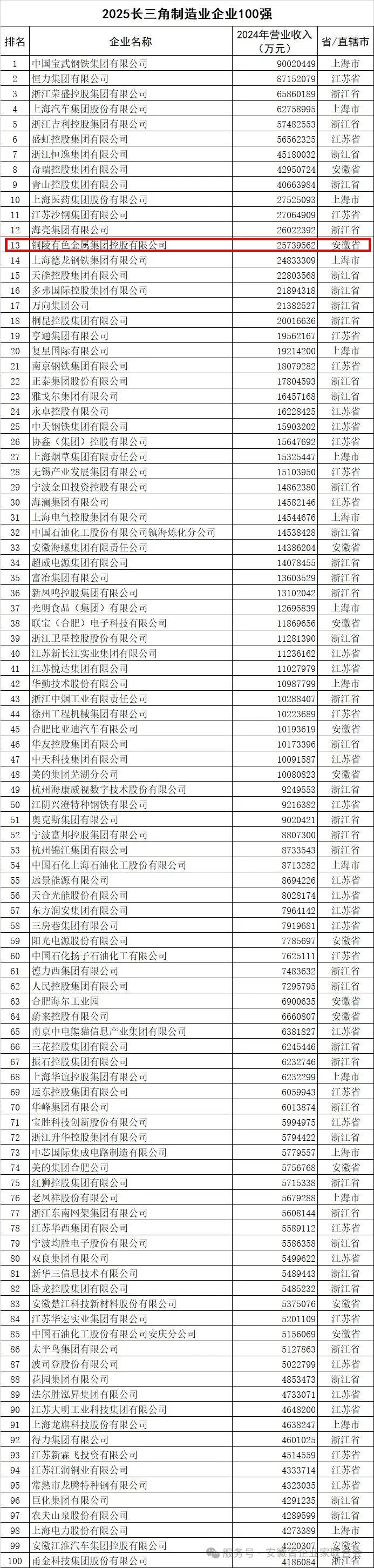 原标题:《长三角百强企业公布,祝贺铜陵这2家企业!》