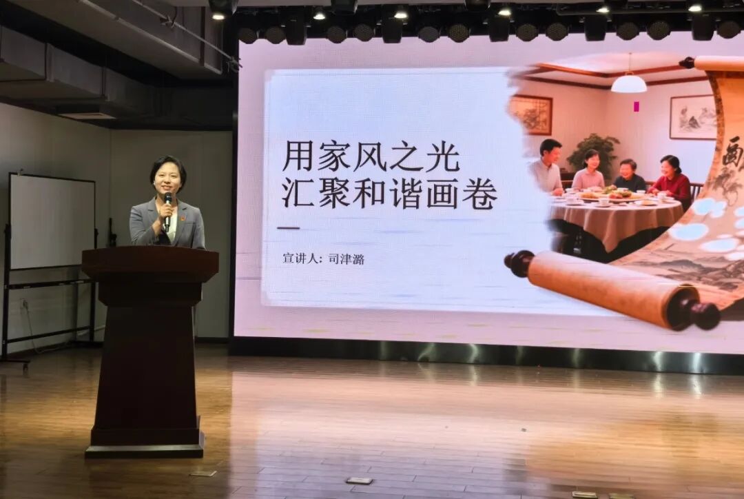 优山美地社区党支部书记欧颖以《共筑法治同心圆 谱写治理新篇章》为题,深度解读法治建设与基层治理的融合路径;金地社区司津璐分享《用家风之光汇聚和谐画卷》,诠释家风作为家庭精神内核与社会风气源泉的深刻内涵;书香家庭代表李羚讲述的她与书的美妙故事,让大家感受阅读传承与家风浸润的独特魅力。