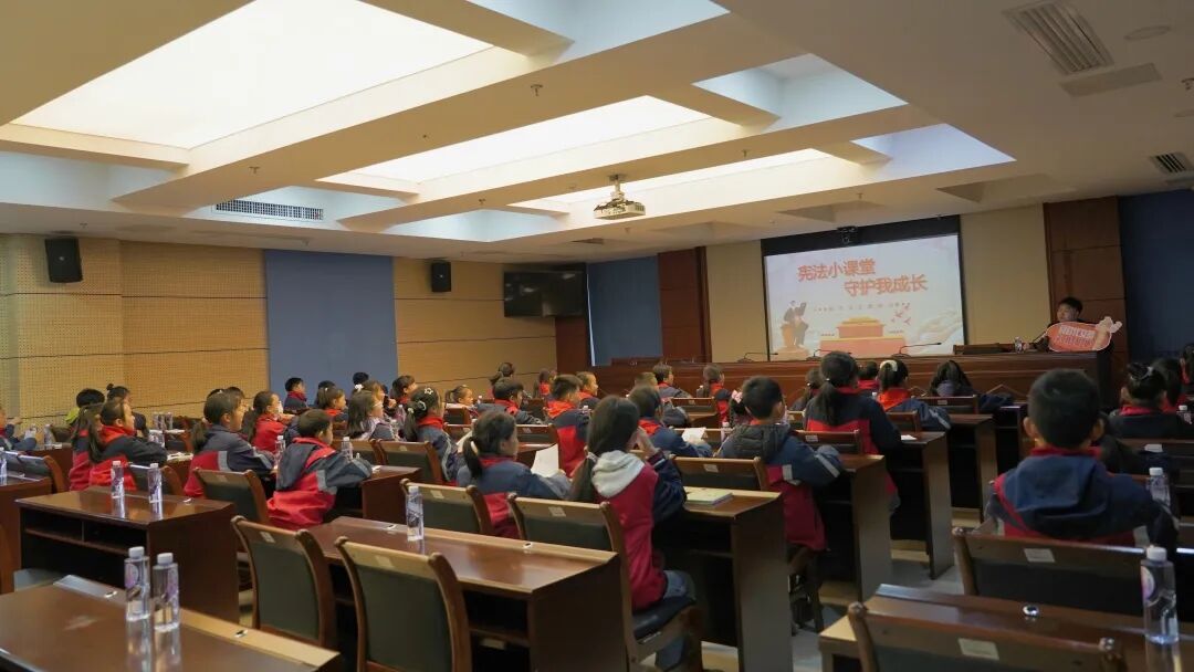 12月4日,长沙县法院组织开展“法院开放日”活动,邀请长沙市大同星沙第二小学50名同学走进法院,零距离接触法院工作,感受司法威严。自贸片区法庭法官助理余杨文卓作为普法志愿者,用通俗的语言深入浅出地阐述了宪法与公民的关系,在孩子们心中播下法治种子。