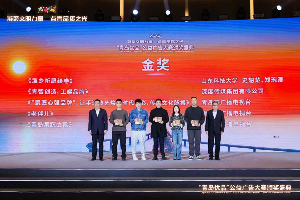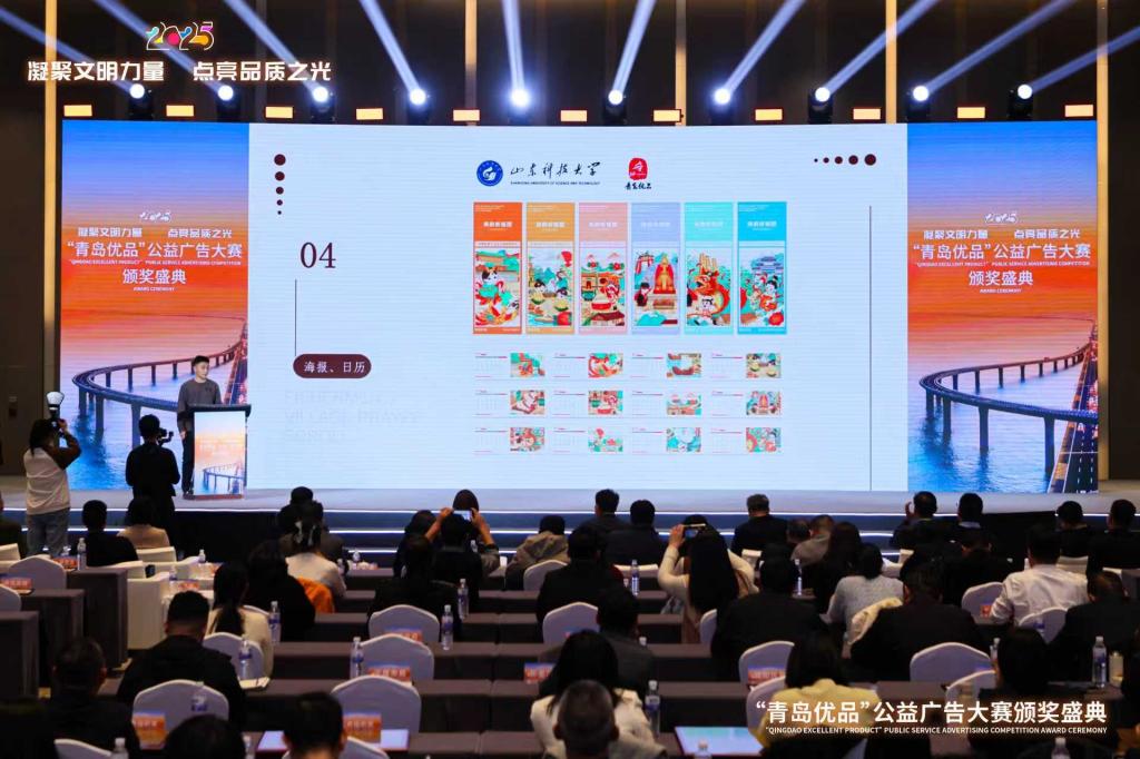 近日,由青岛市场监管局联合市委宣传部、市委网信办、市教育局、市文化和旅游局共同主办,青岛市广告协会承办的2025年度“青岛优品”公益广告大赛颁奖典礼顺利举行。在本次大赛中,山东科技大学艺术学院视觉传达设计系报送的作品从全国逾1300多件参赛佳作中脱颖而出,一举揽获金奖、银奖、铜奖各一项,优秀奖五项,展现了卓越的创新设计与深厚的艺术底蕴。同时,山东科技大学艺术学院亦凭借出色的组织与指导工作,荣膺“优秀组织奖”荣誉称号。