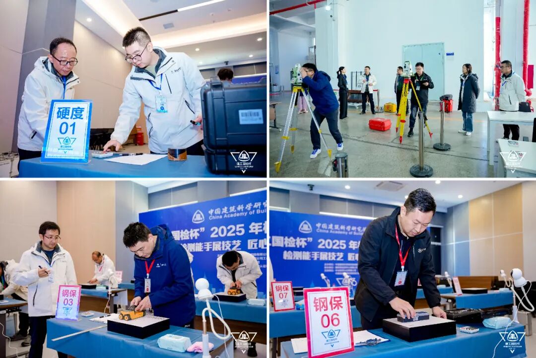竞赛聚焦工程检测的核心关键技术,设立了“钢结构里氏硬度检测”“结构构件变形检测”与“钢筋保护层厚度检测”三大实战项目。赛场上,选手操作规范、数据处置严谨,展现了扎实的技术功底与精益求精的职业素养。此次跨领域交流比武,为三大领域机构深化专业互鉴、促进技术融合提供了有效平台。