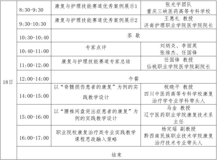 中国康复医学会康复职业教育专委会康复职业教育骨干教师师资能力培训班日程安排