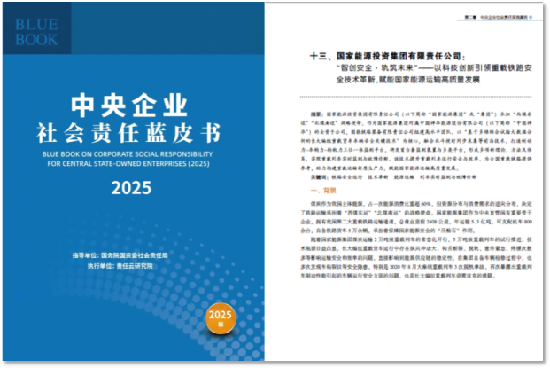 12月5日,国务院国资委主办的“中央企业和地方国资国企社会责任蓝皮书发布会”传来捷报——国家能源集团2024年可持续发展报告成功入选《中央企业社会责任蓝皮书(2025)》优秀报告,此次评选为国务院国资委首次推出社会责任报告专项成果,共十家央企集团跻身优秀报告行列。