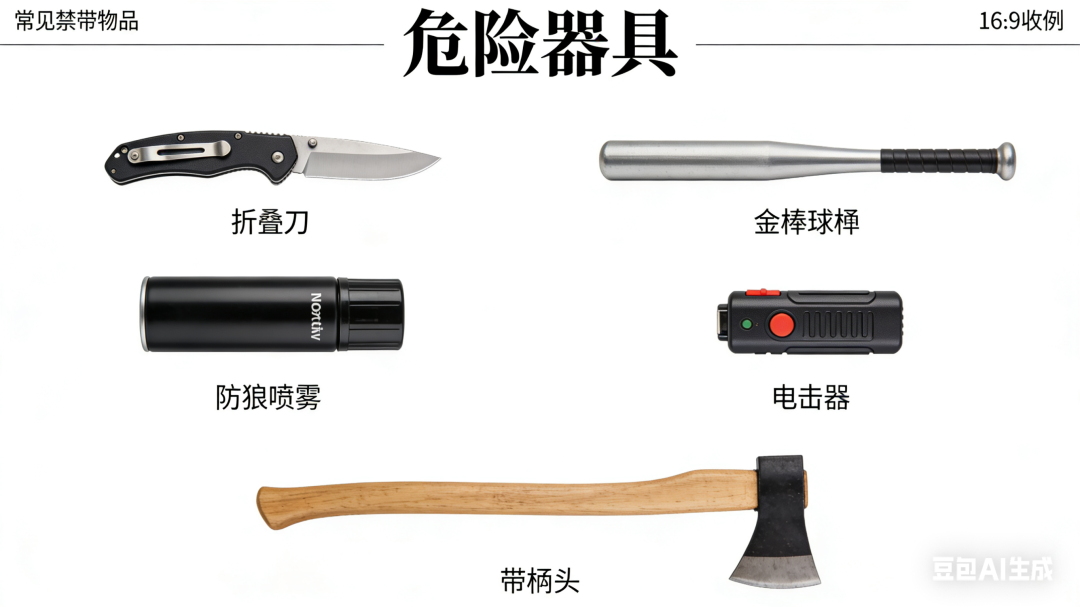 危险器具:如刀具、棍棒、喷雾等任何具有攻击性的物品。