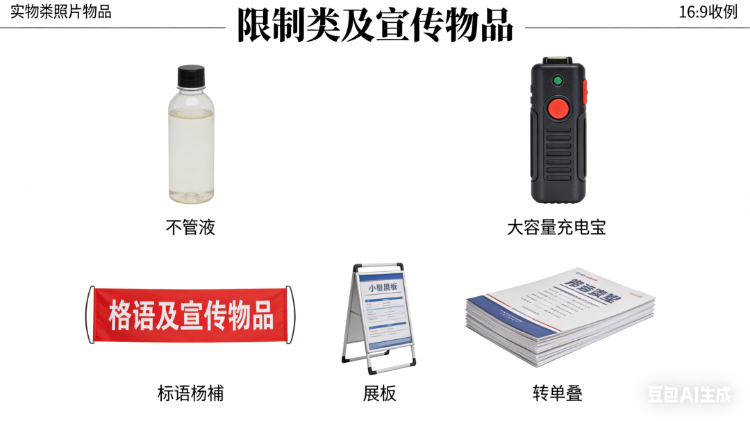 限制类物品:如不明液体、凝胶、粉末及超大容量充电宝等。