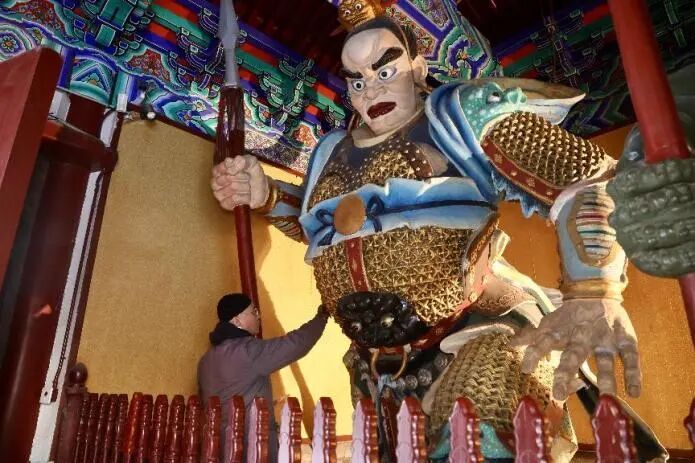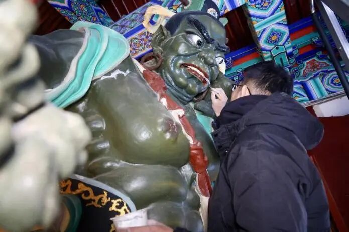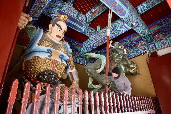 近日,天津天后宫开启塑像修复工作。来自国家级非物质文化遗产代表性项目保护单位——天津泥人张彩塑工作室的工艺美术师们进驻天津天后宫,开始这场自1986年以来规模最大、范围最广的塑像修复工作。