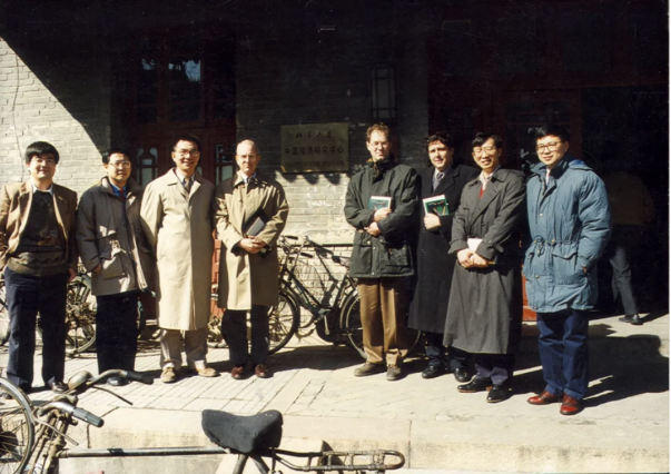 林毅夫(左三)与同仁在北京大学中国经济研究中心(旧址)