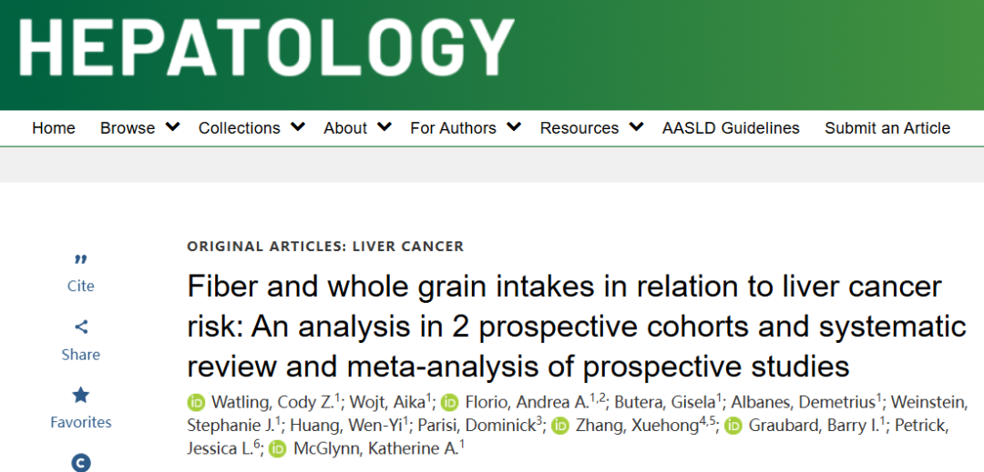 ④Watling, Cody Z. , et al. Fiber and whole grain intakes in relation to liver cancer risk: An analysis in 2 prospective cohorts and systematic review and meta-analysis of prospective studies. Hepatology: Official Journal of the American Association for the Study of Liver Diseases 3(2024):80.