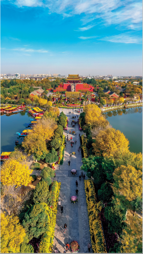 墙摞墙、路摞路,一层泥沙一层城,新城建在老城上。然而,无论开封多少次被掩埋在泥沙之下,南北中轴线也从未改变,它看遍花光满路、节物风流,也见证刀光剑影、城头变幻大王旗。文明熔炼,安土重迁,既是古城引以为傲的“千年未变中轴线”含义,也是贯穿古今的“城市文化坐标”。