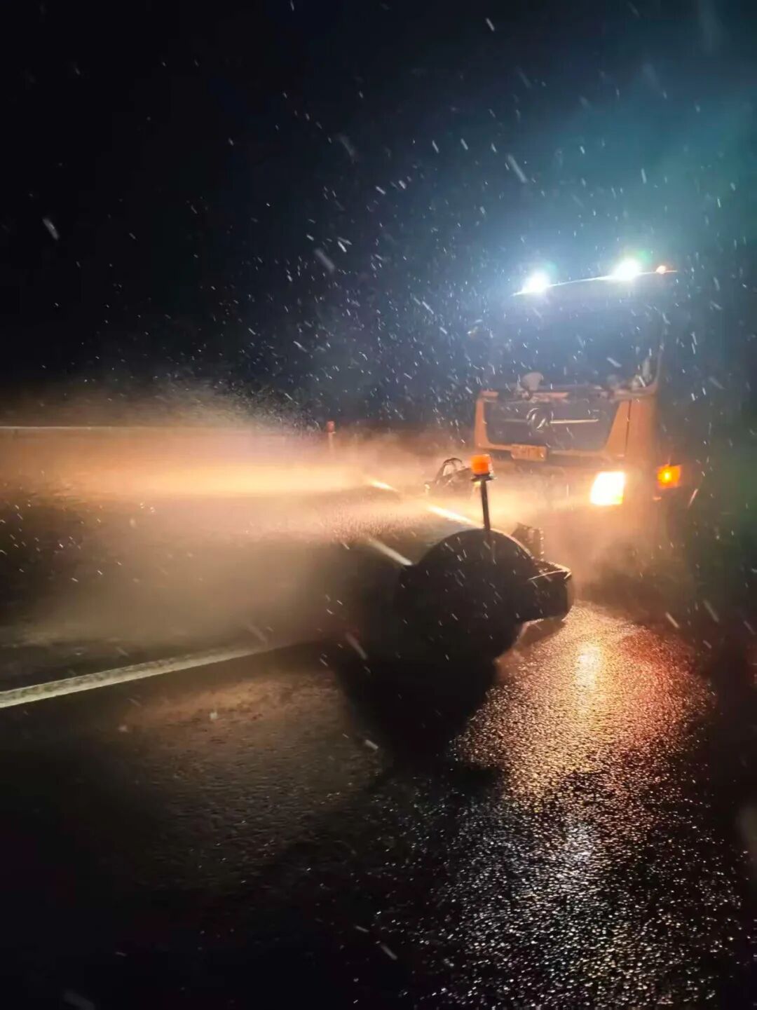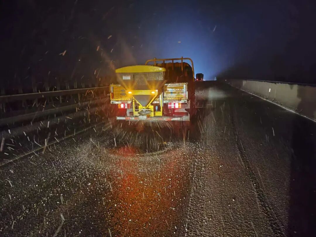 雨雪天气发生后,市公路部门坚持“预防为主、防除结合”的原则,在易结冰路段科学实施预防性融雪剂撒布作业,并于气温降至冰点前,对重点桥梁、弯道、陡坡、高架快速路及匝道等关键路段、区域完成首轮融雪剂撒布,有效预防夜间路面结冰。作业过程注重环保与精准管控,力求控制用量、提升成效。同时,进一步加大道路巡查力度,通过“车巡+步巡”与路网监控系统相结合的方式,实时监测路面温度与结冰状况,确保隐患早发现、早处置。