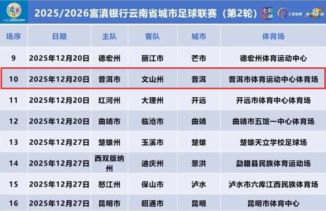普洱队有这些比赛