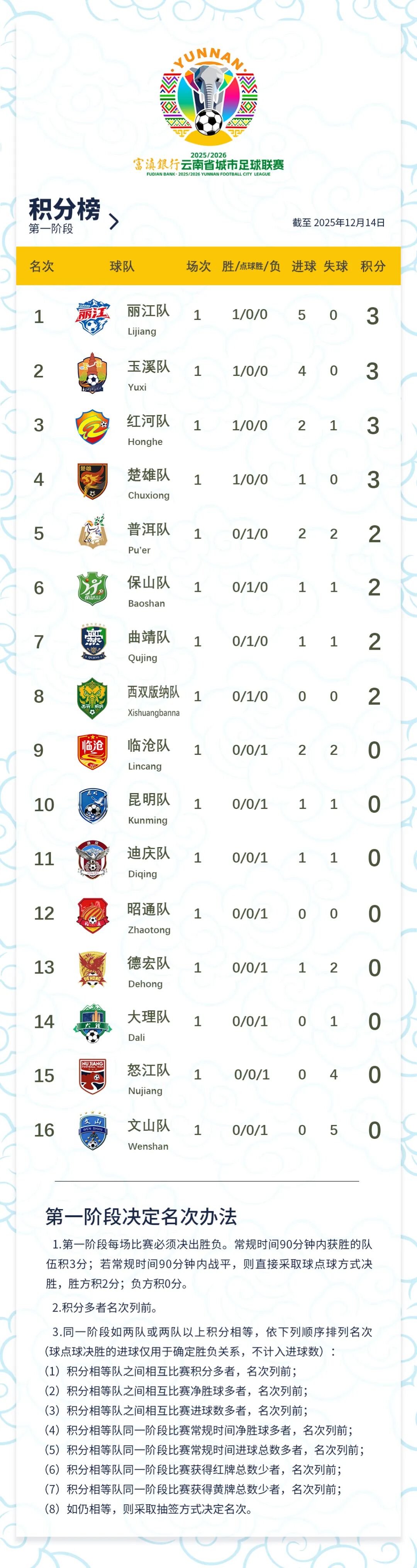 原标题:《“滇超”第一轮比赛结果出炉,一起来看→》