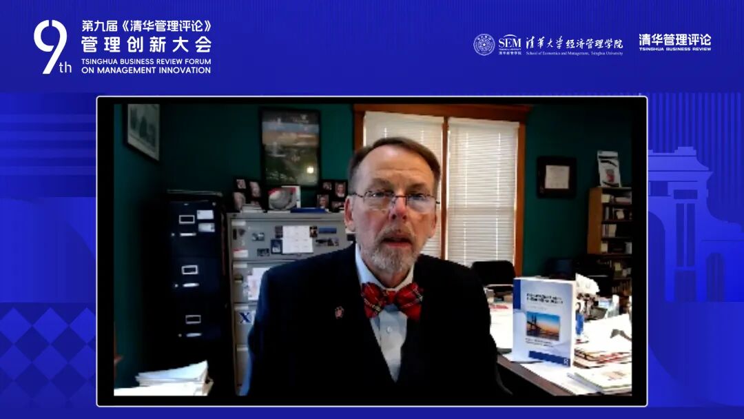 接下来,美国辛辛那提大学德纳商学院教授查尔斯·H·马修斯(Charles H. Matthews)为大家带来《人工智能时代的管理创新与新质生产力》主题演讲。他指出企业AI技术的经济效益低转化率症结在于组织管理与企业文化的滞后,新质生产力无法仅依靠技术的单点突破实现,而必须由创新、管理、创业精神三大要素协同支撑。具体而言,AI时代创新的内涵从渐进式的效率优化转变为生成式的范式跃迁;创新的管理需通过重构人员组织、决策制定与流程运作方式实现人机协同增效;创业精神则是AI驱动企业变革的重要引擎。