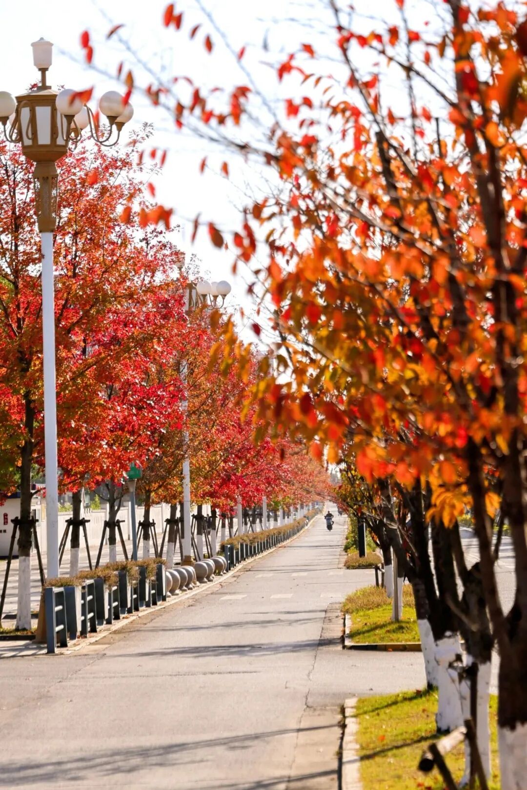 而胡埭人民公园的枫树,最妙是城墙前那两株,一棵已红得如火如荼,一棵却是满眼苍绿。一红一绿,在此刻展露出截然不同的性情与时序——仿佛时光在此处打了个温存的结。
