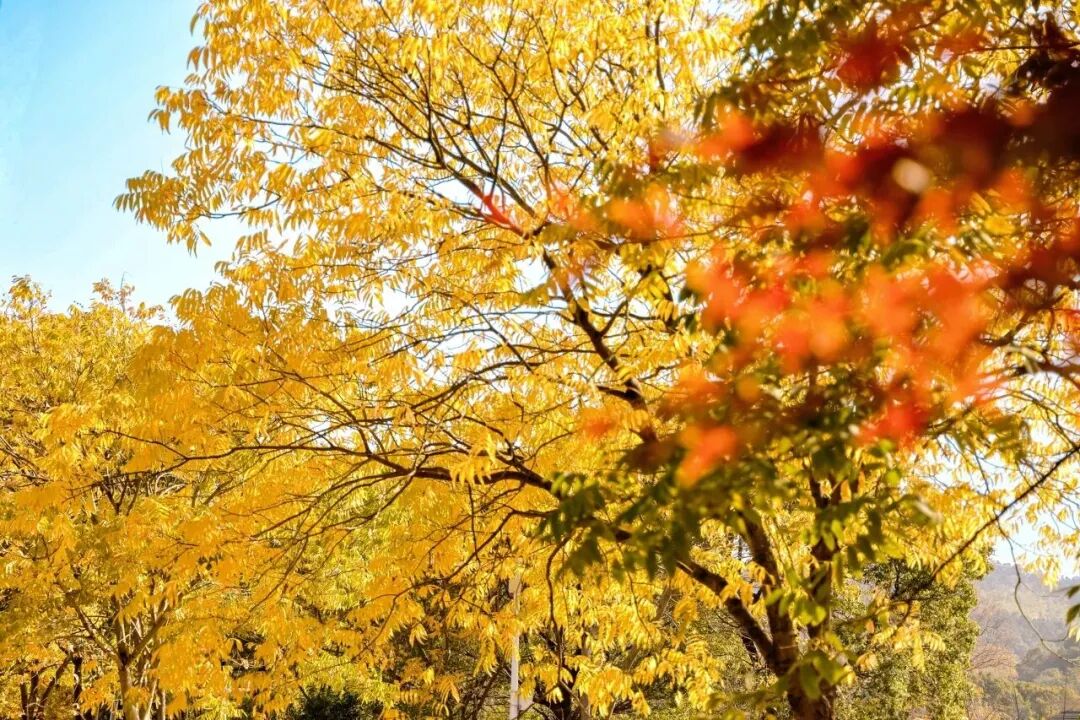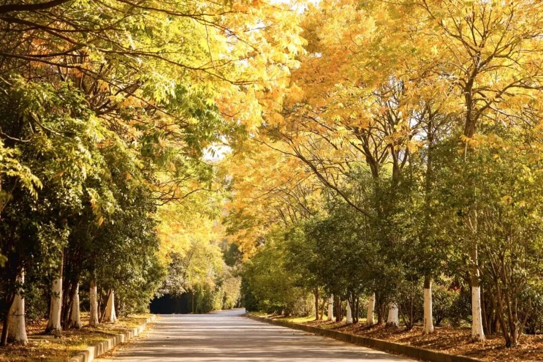 晨光里的苗圃路,是属于无患子的。这条平日是安静的路,如今却忽然明亮、辉煌起来。两旁的无患子,高调地撑开一树树纯粹的金黄,那高纯度的颜色,像是阳光沉淀了一季,终于在此刻凝固。羽状的叶片,风过时,会发出窸窣声,如同万卷书接连翻动。