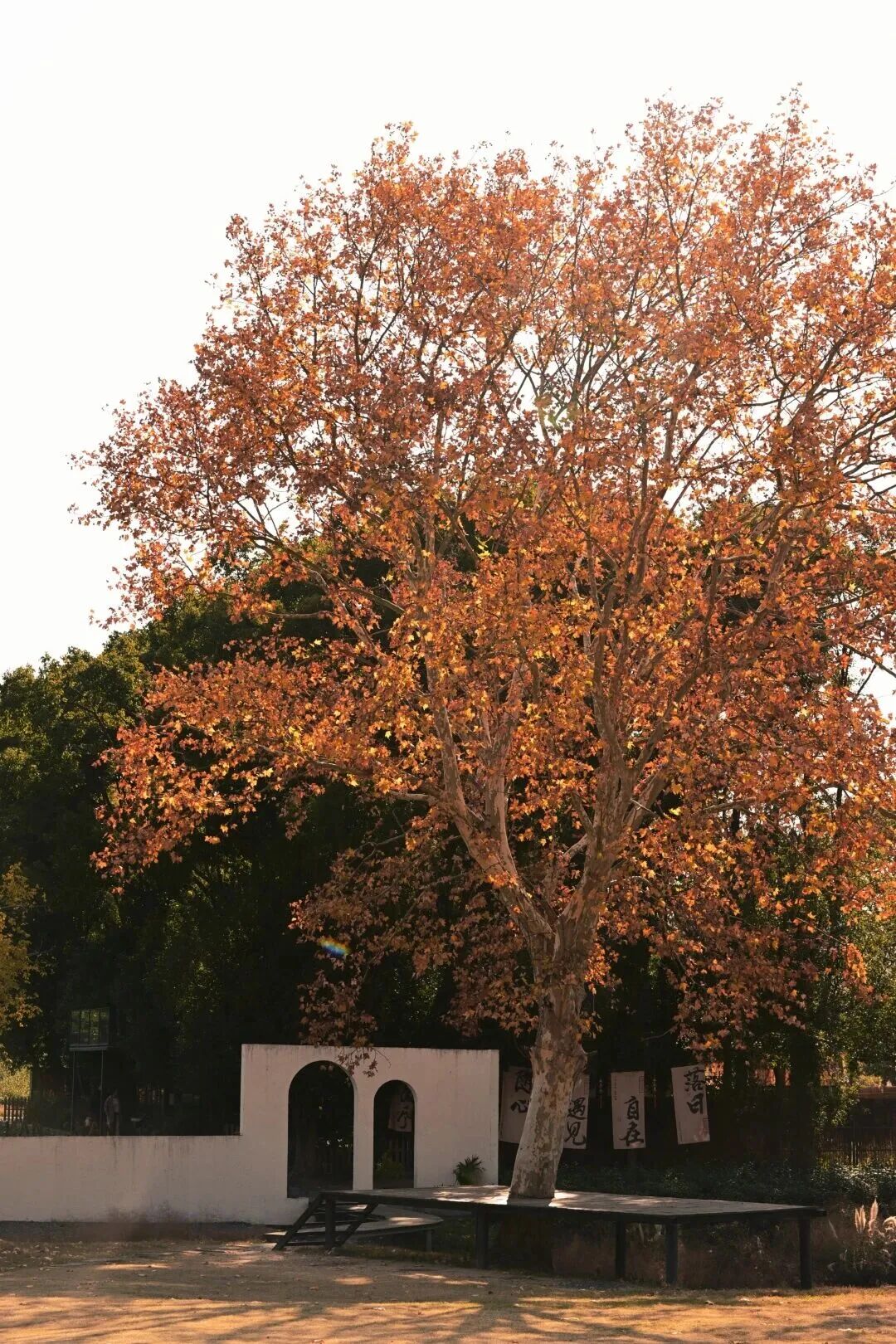 循着草木的清芬往深处走,喧闹渐次淡去,一抹鎏金般的亮色撞入眼帘——那是进山处的朴树,金黄的枝叶越过围墙,裹挟着午后暖阳送入院落,任其漫染开来。