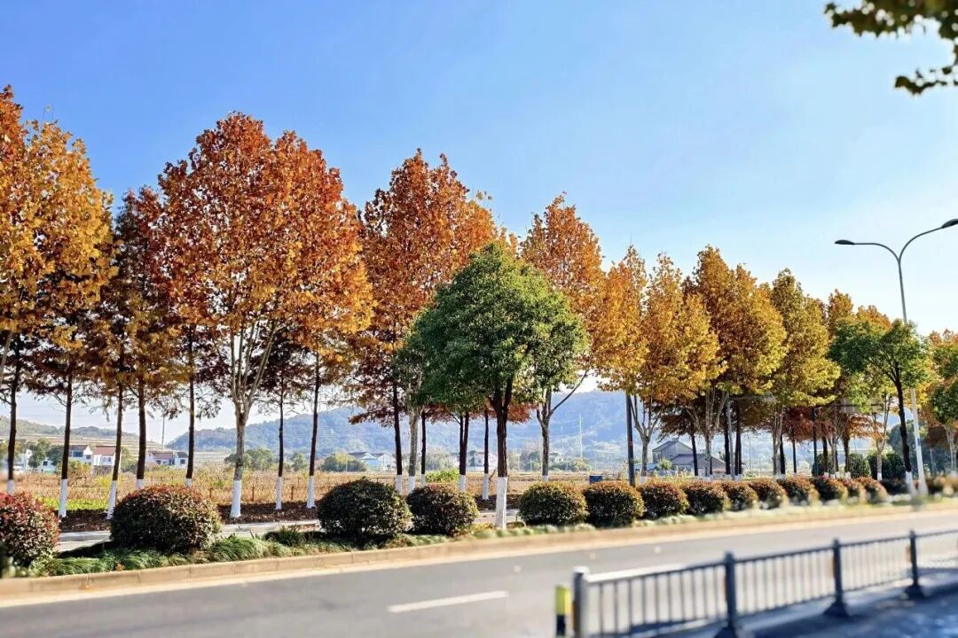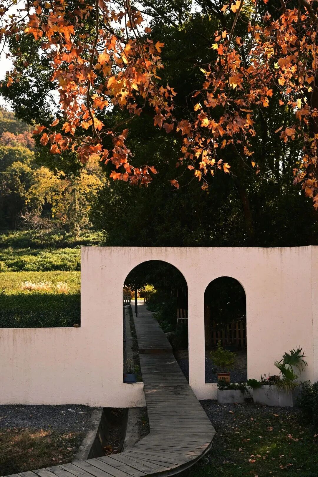 转去茶厂路,景象便换了篇章。山茶屿门前高大的梧桐与常绿的茶田相邻,一边是繁华渐褪,一边是苍翠依旧,生命的荣与枯,在此刻只一步之隔,二者在无声的对望中化作象征着“周而复始、生生不息”的永恒符号。