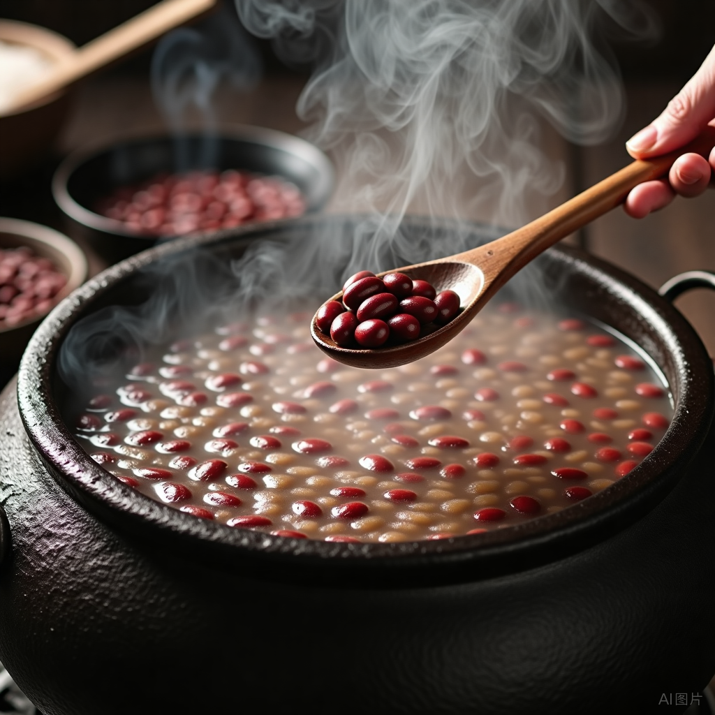 等锅凉得差不多了,姥姥给我们兄妹几个一人盛了一大碗。她转身从柜子里舀出一大勺红糖,豪爽地往我们碗里添。我们握着小铁勺,一边搅和,一边迫不及待地送进嘴里。红糖的甜、豆子的绵,混着淡淡的焦香,在舌尖化开——那滋味,成了童年里最香甜的记忆。