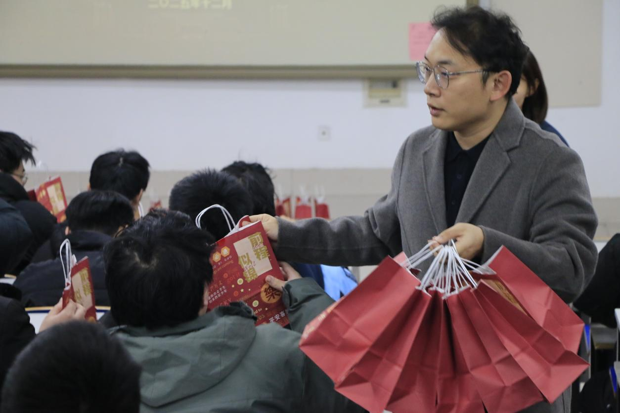 活动最后,各位老师亲自将精心准备的考研温暖礼包送到每一位同学手中。礼包虽小,却承载着外国语学院对同学们满满的关爱与期望。相信在外国语学院的关怀与支持下,同学们定能以更加饱满的热情和昂扬的斗志全力冲刺考研,在青春的赛道上奋力奔跑,书写属于自己的辉煌篇章。