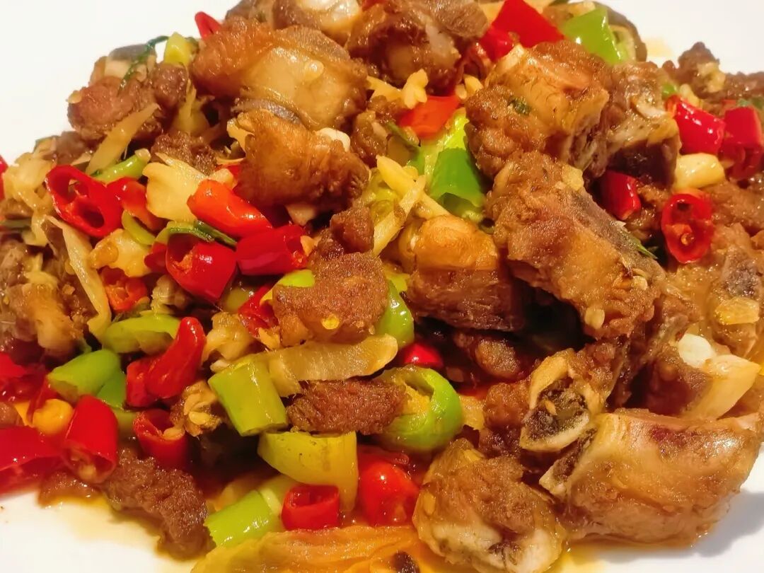 精选排骨先卤后炸至金黄,外酥里嫩满是肉香。搭配鲜脆红绿椒翻炒,椒香渗入肌理,辣中带甜超解腻。色彩鲜亮抢眼,一口下去,味蕾全开。