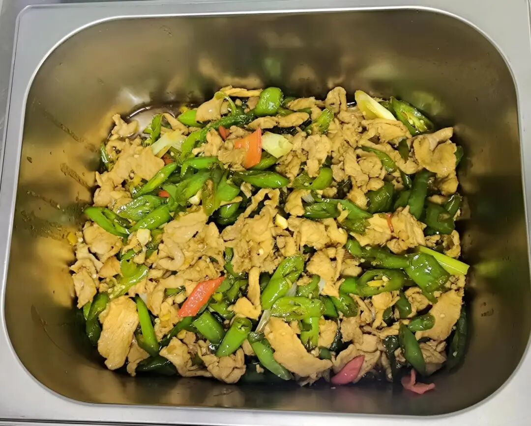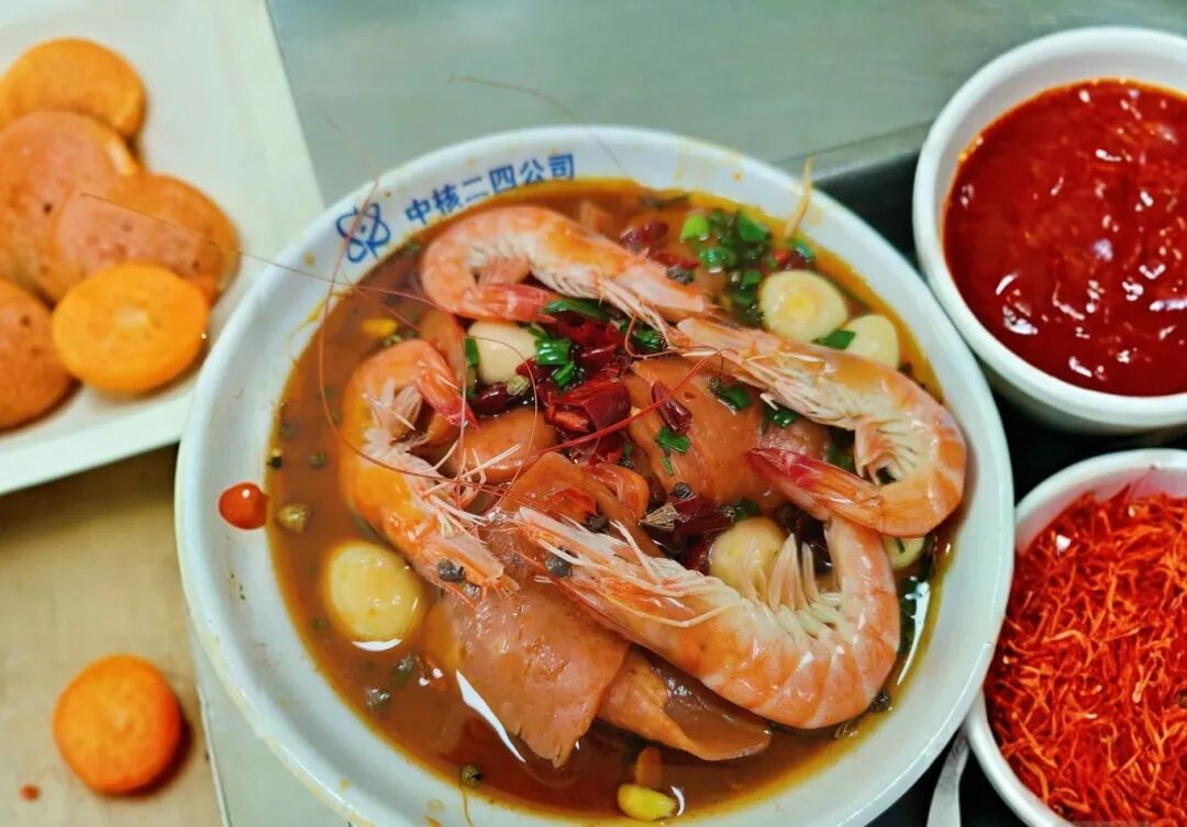精选三层五花肉,煸至油润焦香不腻口,搭配蒜苗、青椒、豆瓣酱爆炒。咸香醇厚中带着微微辣意,肉香与酱香深度融合,每一口都够味。热辣鲜香下饭菜,给核电建设者们带来“能量补给”,让家常美味多了份独特记忆。