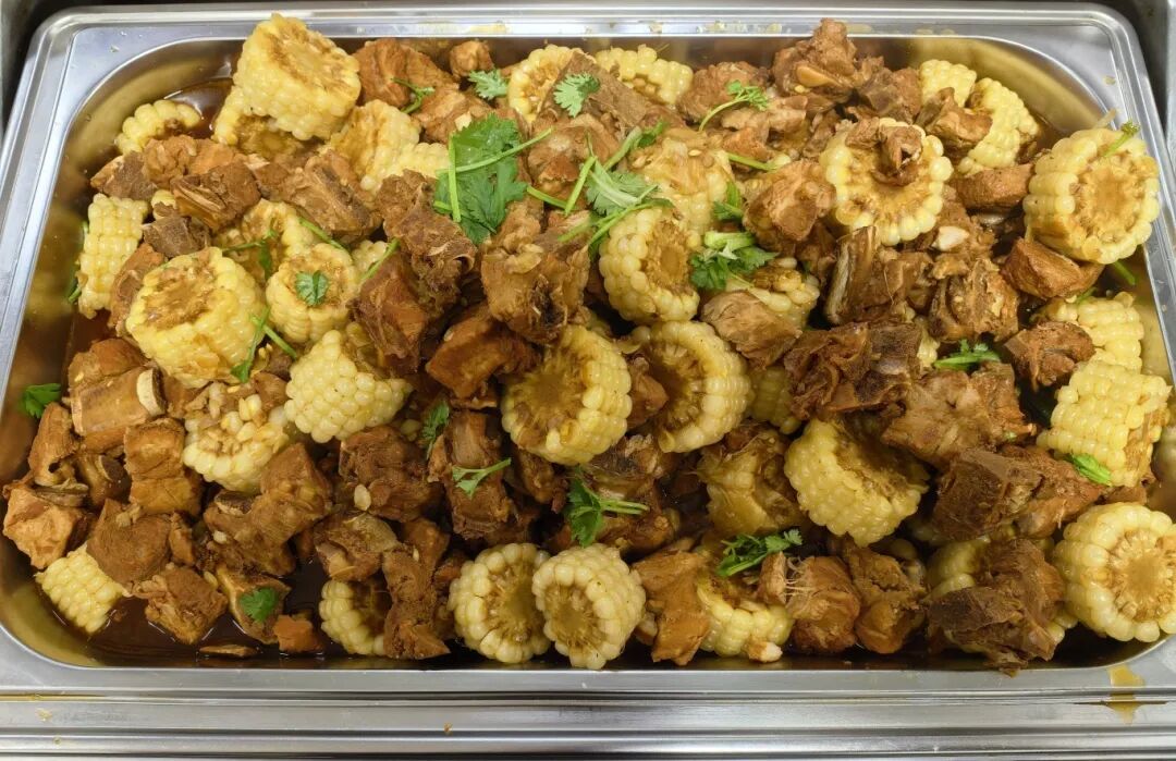 经典家常硬菜,精选排骨与甜玉米同烧;排骨炖得酥烂脱骨,咸香入味;玉米吸满肉汁,甜糯回甘;酱汁浓稠裹满食材,一口肉香混着玉米清甜,暖胃又下饭,是受员工喜爱的爆款。