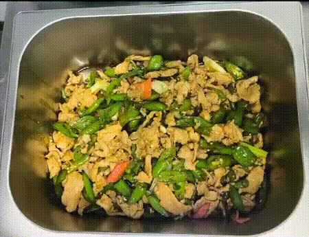 精选鸡胸肉切丁,搭配香脆花生米、爽脆黄瓜丁,以秘制宫保酱汁烹制,咸鲜微辣带甜,口感层次丰富,是项目部食堂融合湘味与家常风味的人气担当,一口入魂,尽显烟火温情。