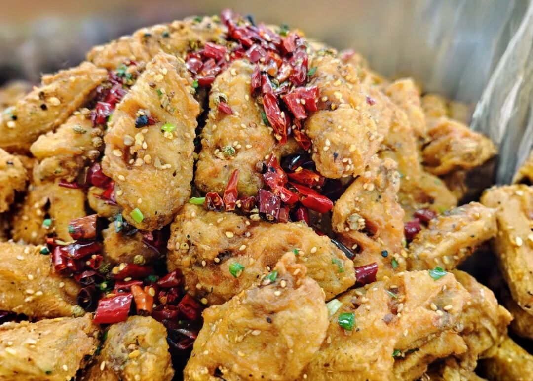 以精选鸡翅为主料,经秘制香辛料匠心腌制,烈火急炸,外皮金黄酥脆,内里肉质鲜嫩多汁,入口先是热烈的香辣冲击,随即是复合香料的醇厚回味,让人回味无穷。