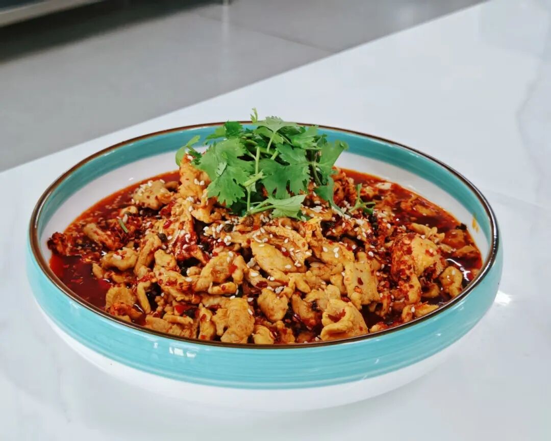 红油裹着嫩肉片,麻辣够劲超下饭。