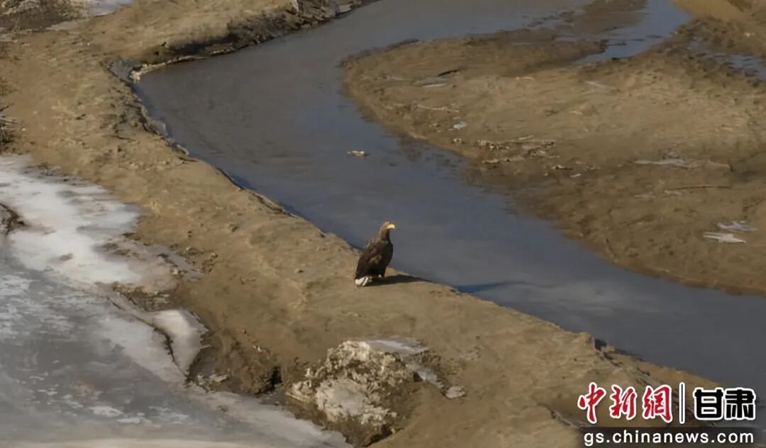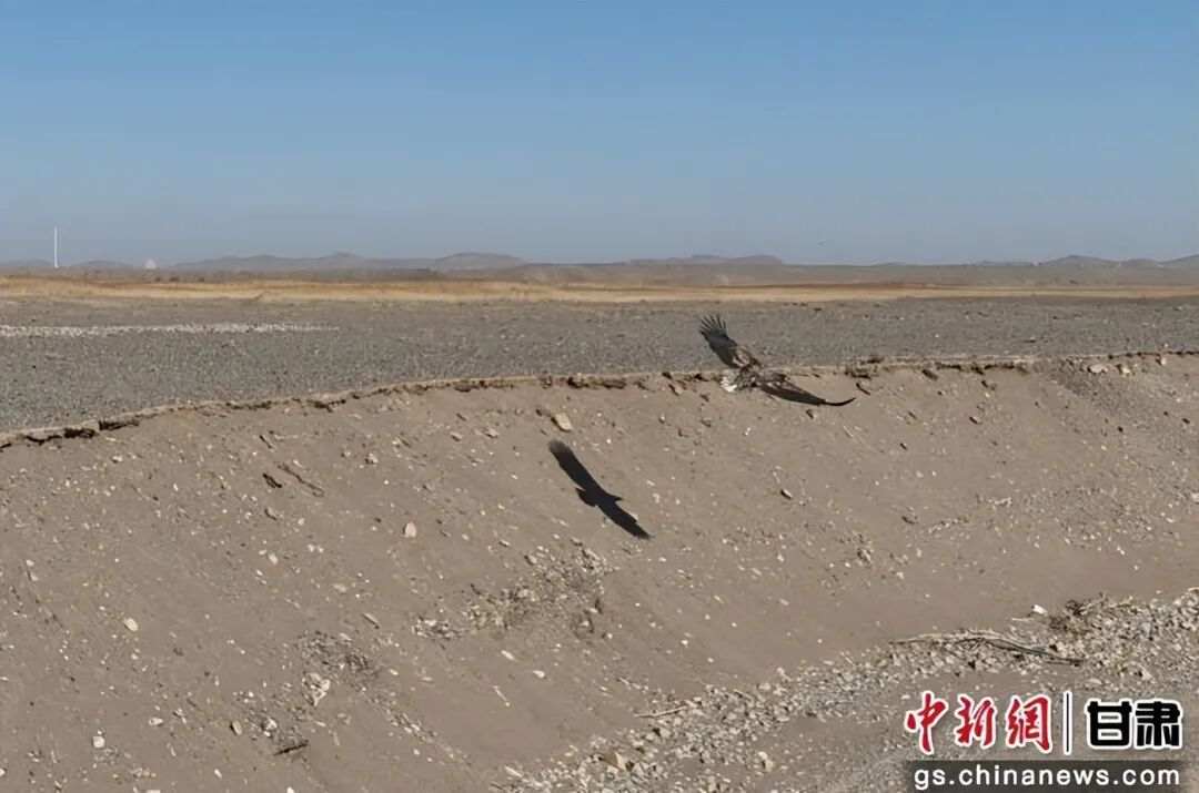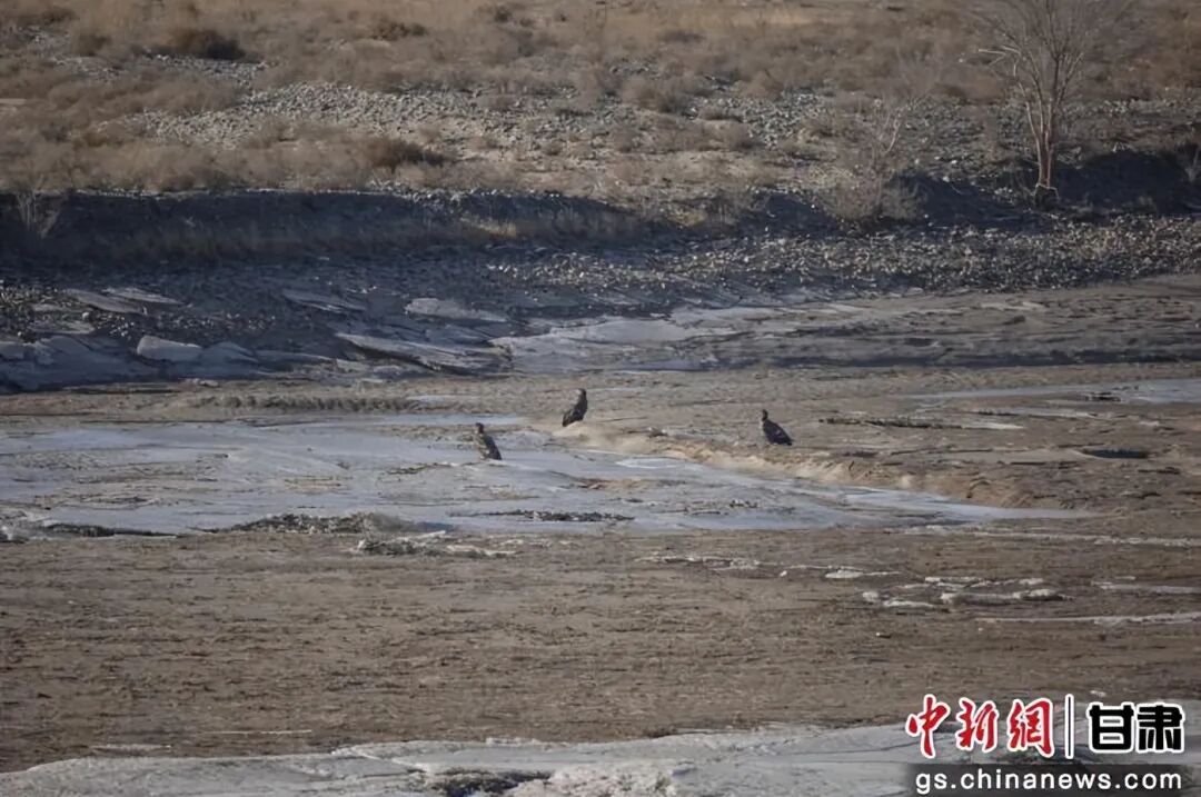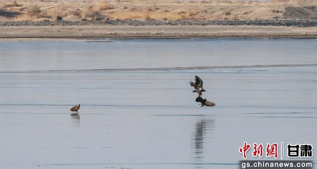 12月16日,甘肃省酒泉市金塔县林业和草原事务中心的工作人员在金塔县大墩门水库湿地开展鸟类监测工作时,首次监测到6只国家一级保护野生动物——白尾海雕。它们或在水面低空盘旋,或俯冲觅食,雄健的身姿与冬日水库的静谧风光相映成趣。