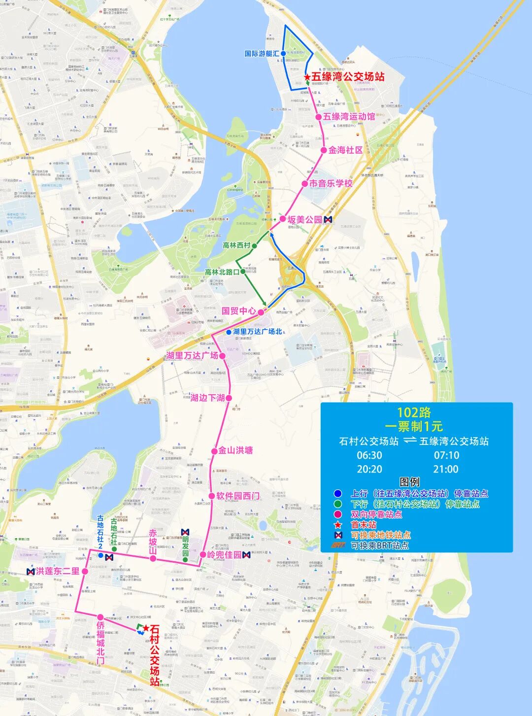 五缘湾公交场站始发,行至洪莲中路石村路口,改经石村路至石村公交场站。