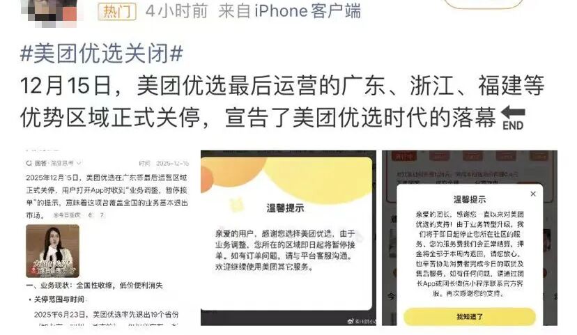 如今,美团优选广东也于今年12月15日关停。它曾是大家精打细算的“宝藏仓库”,装满三餐的烟火气和省到钱的快乐。一个时代的片段就此翻页。