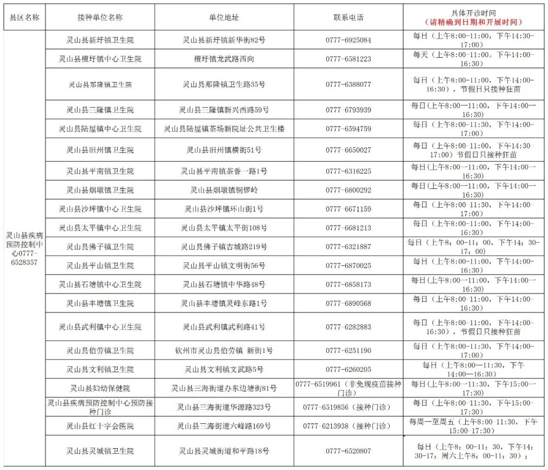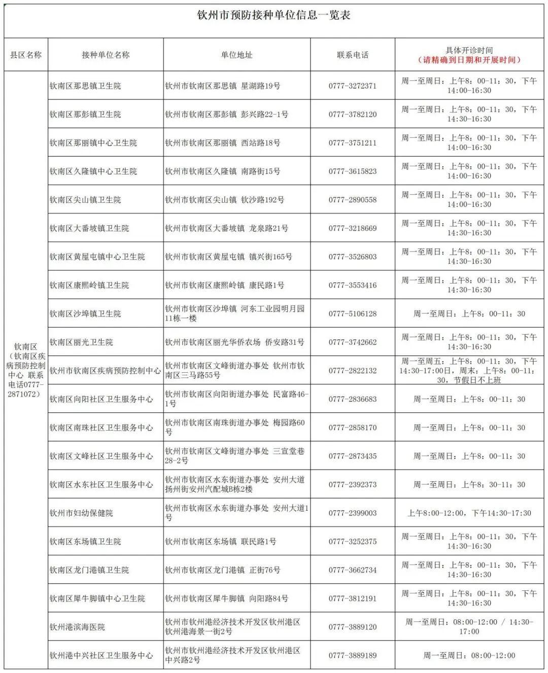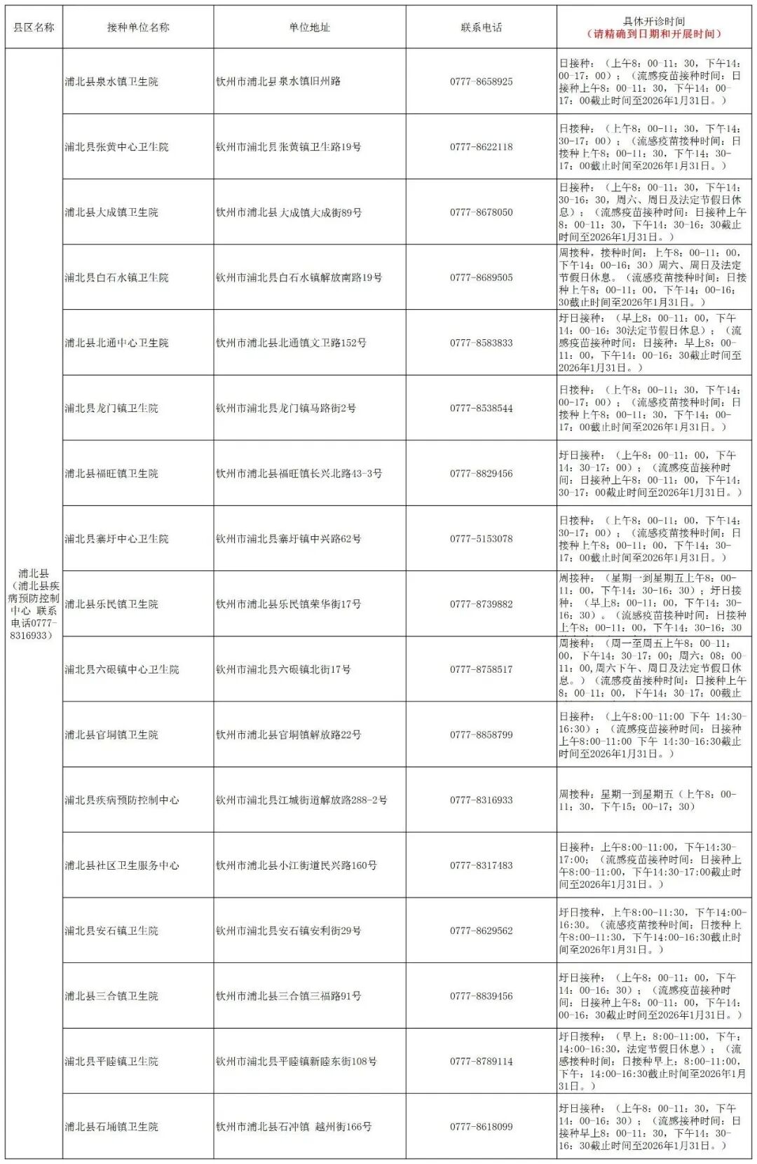 五、钦州市流感疫苗接种单位(周末也可以接种)