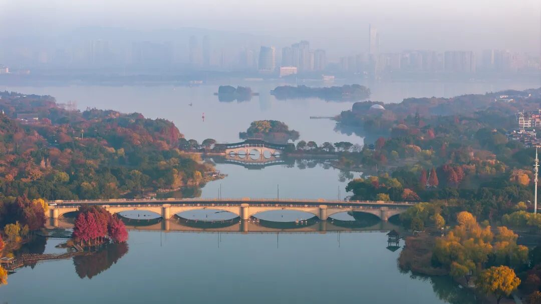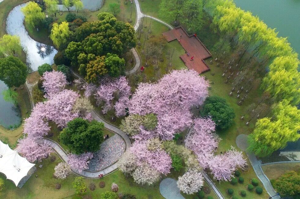 公园南端与江南大学无缝衔接,春有樱花牡丹,夏可赏荷观鱼,秋冬时节有桂花腊梅与书香相伴……在这里能看到年轻的身影与古老的湿地和谐共处,生机盎然。