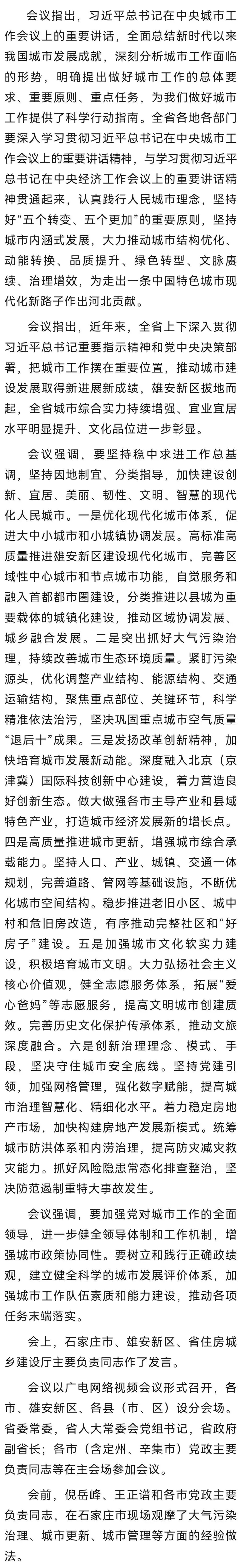 河北省委城市工作会议在石家庄举行