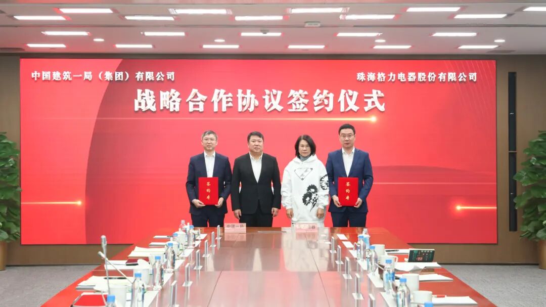会谈后,董明珠、左强见证中建一局与格力电器签署战略合作协议。