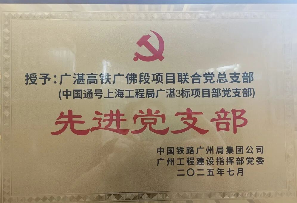 在中国铁路广州局集团有限公司广州工程建设指挥部党委举办的“七一”表彰大会上,广湛3标项目部党支部被授予“先进党支部”称号。