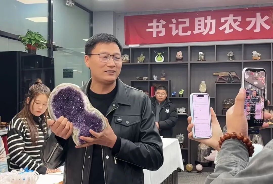 在兴西村水晶电商产业园,90后主播蒋心悦说:“赵书记帮我打造了个人直播IP,教我选品技巧,现在我的账号有上万粉丝,每天能卖1万多元。”她的直播间里,实现了“水晶+农产品”双带货。