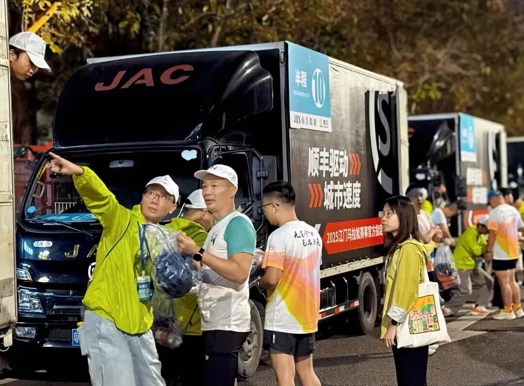 在便民服务方面,江门顺丰速运公司将专业保障与温情关怀深度融合。赛事起点,利用大货车车厢搭建临时储存柜,为选手提供个人物品寄存服务,赛后同步转运至半马、全马终点,让选手无需往返、解放双手。终点区域,特设洗护服务点,选手赛后可将衣物交由顺丰,由专业洗衣店清洗后上门配送,尽享便捷洁净体验。