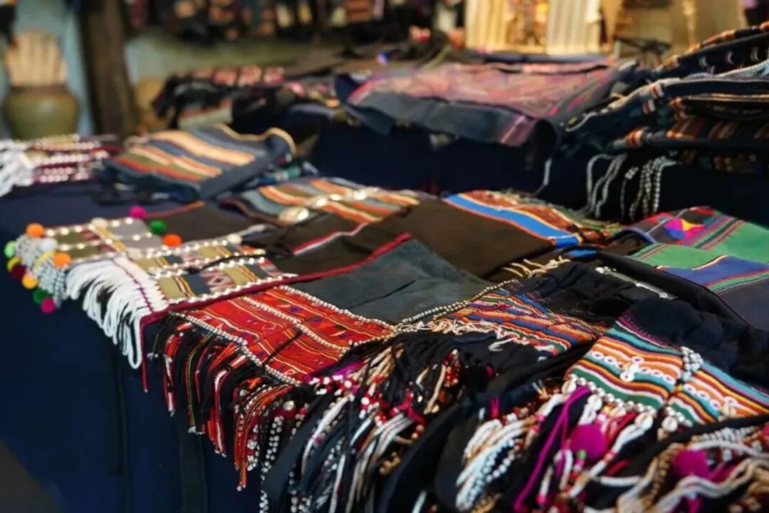 琳琅满目的手工织锦、银饰