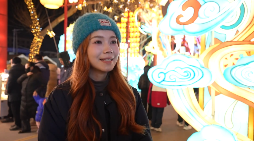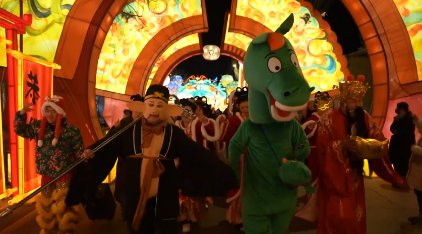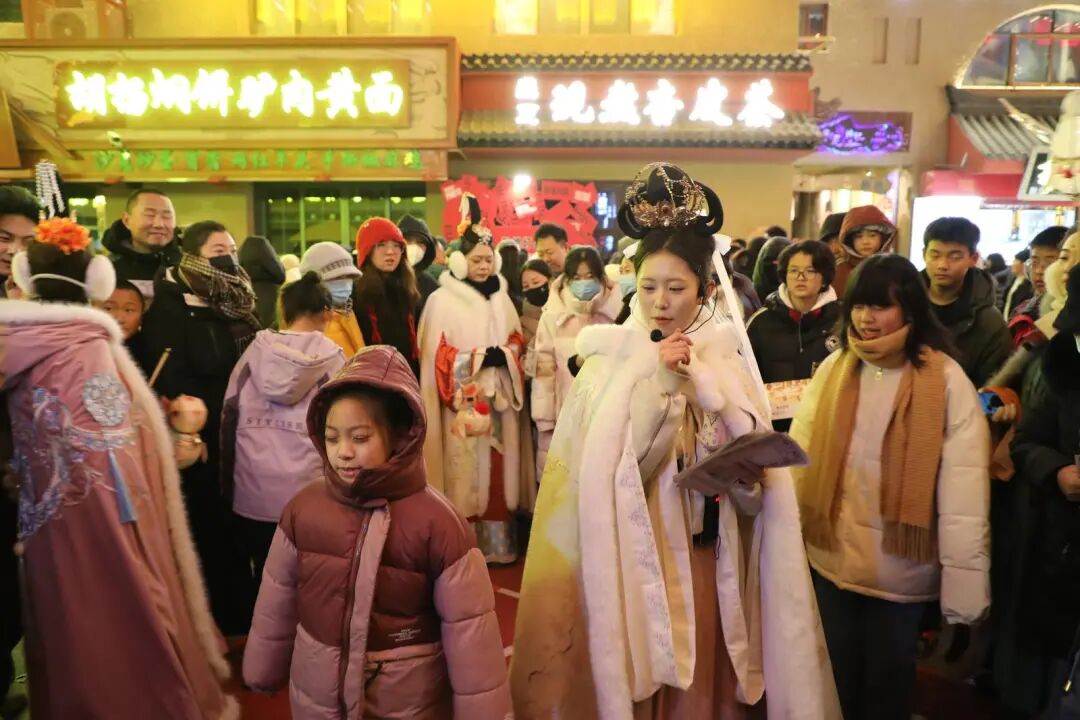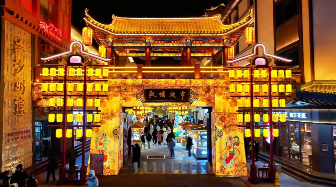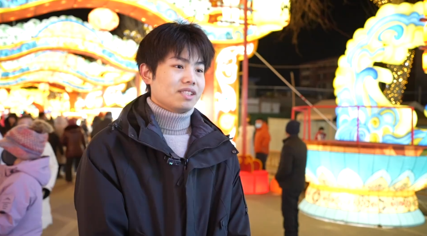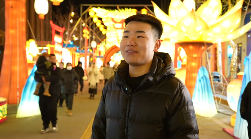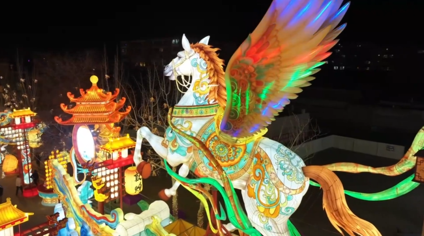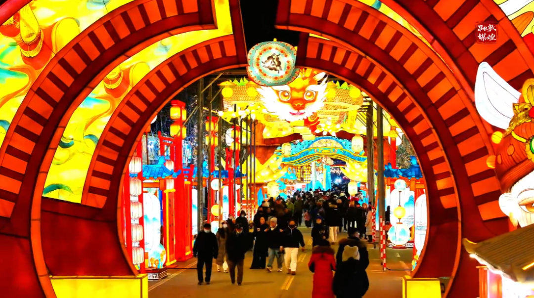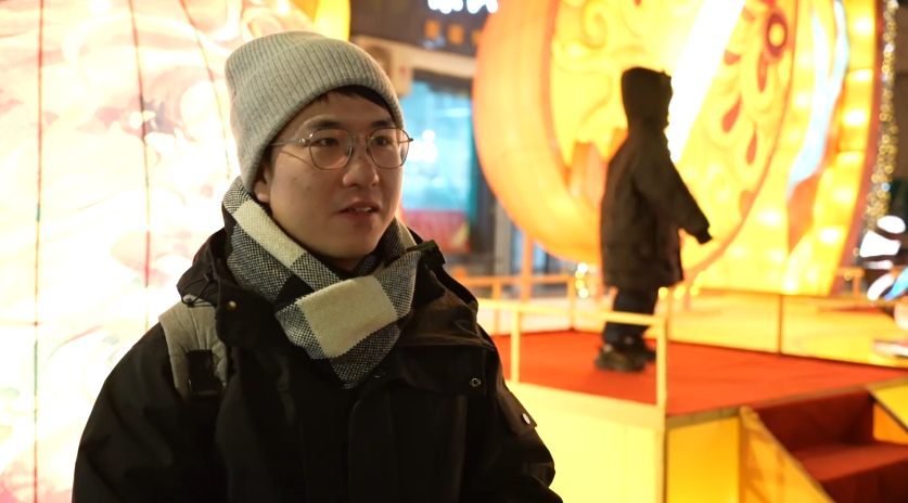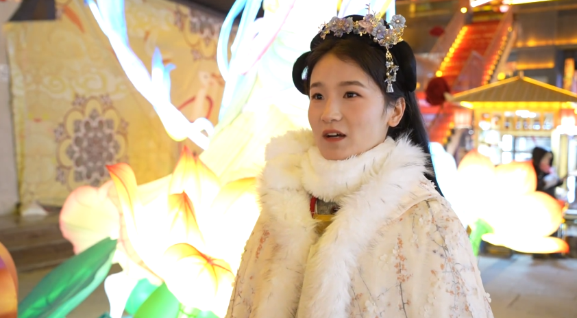 上海游客杨雯如说:“我感到整个灯会的布置非常精致好看,那边很多灯,它是做成了十二生肖的形状,融合了中国的传统文化,还有莫高窟里面的一些动物的造型,我觉得就是把夜市点亮得非常出彩。”