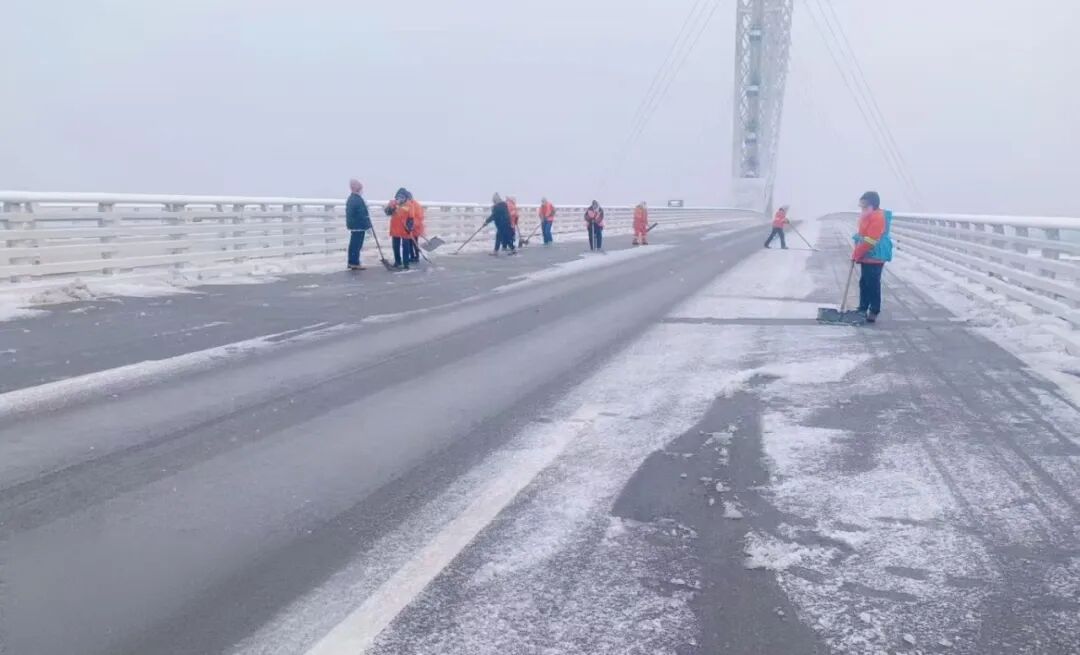 △环卫工人在严寒中清扫积雪