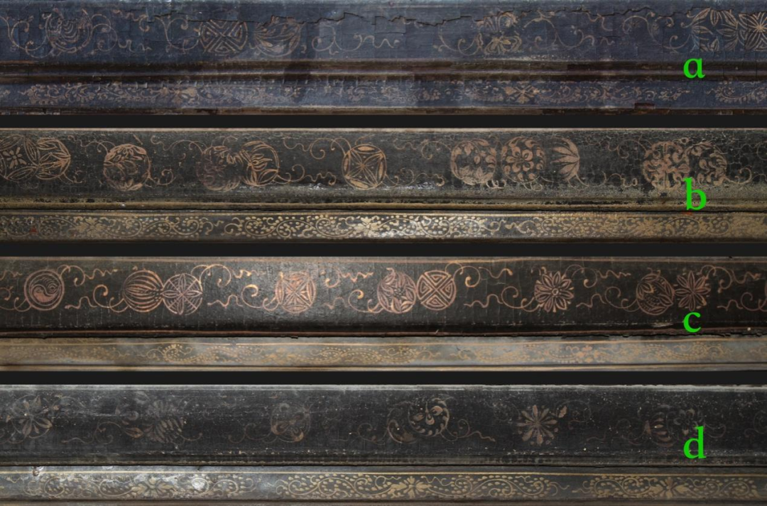 b、c、d分别为三处光绪时期残留纹饰)
